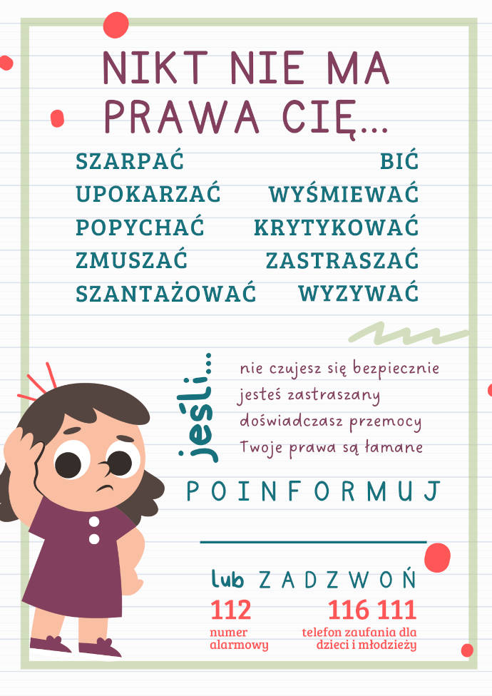 - 800-12-12-12 – całodobowy Dziecięcy Telefon Zaufania Rzecznika Praw Dziecka;